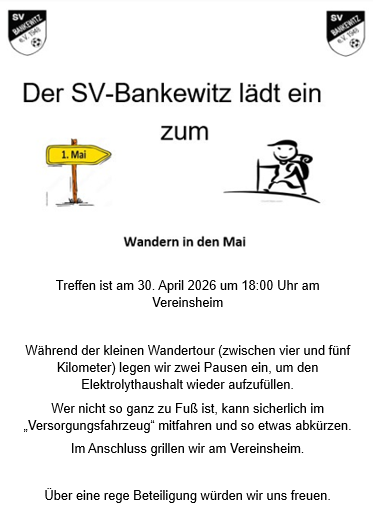 Beginn: 19.00 Uhr im Sportheim des SV Bankewitz