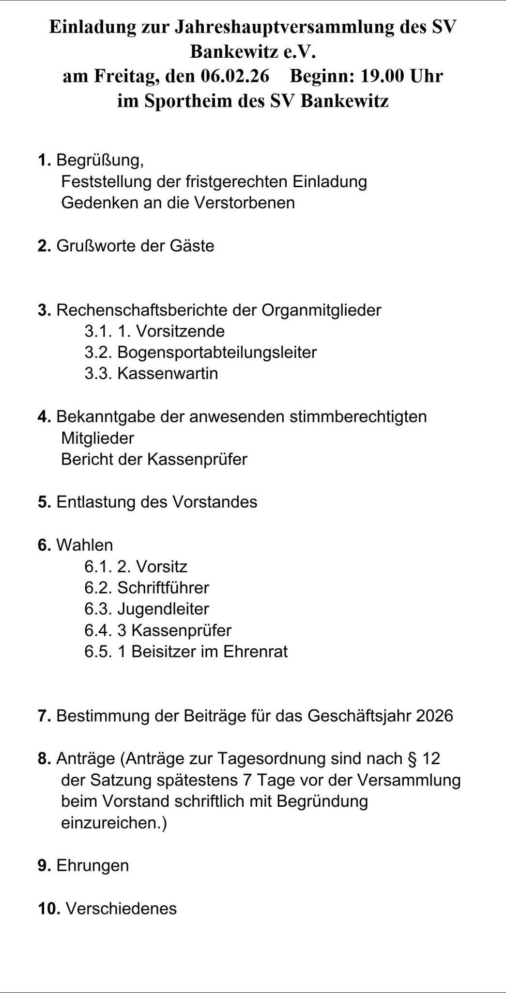 • Jahreshauptversammlung 2026 des SV Bankewitz e.V. 1948